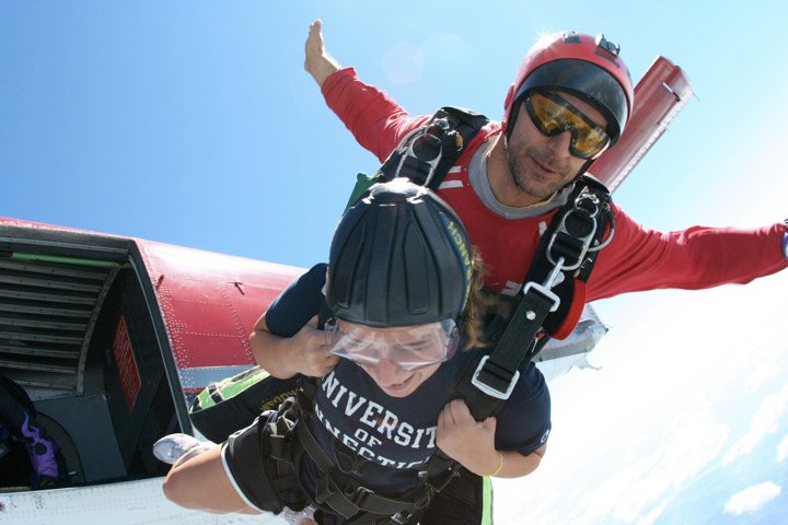 The videographer jumps out of the plane, and we rock back and forth and “THREE… TWOO…”